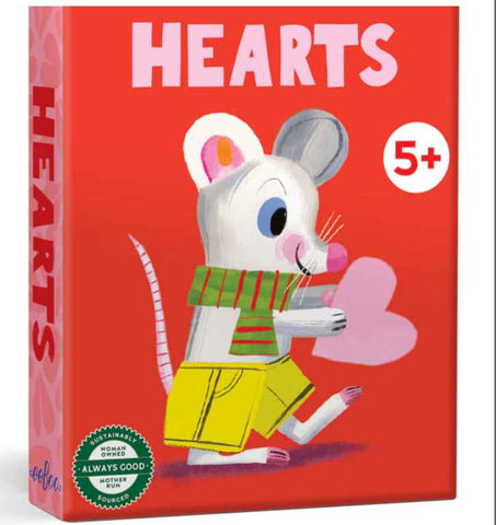 Hearts playing card deck for children and families. A sweet introduction to a classic card game, featuring bright and friendly illustrations.